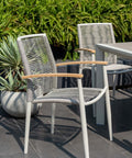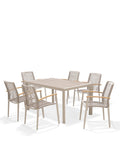 Bộ bàn ăn ngoài trời 1 bàn URBANITE 160 light cream và 6 ghế Topaz roped armchair