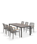 Bộ bàn ăn ngoài trời 1 bàn URBANITE 207 dark grey và 6 ghế Topaz roped armchair