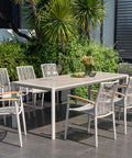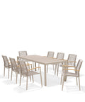Bộ bàn ăn ngoài trời 1 bàn URBANITE 207 light cream và 8 ghế Topaz roped armchair