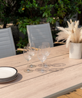 Hình dạng và hình thức gọn gàng của chiếc bàn được bổ sung bởi các chân bàn cách điệu, góp phần tôn lên thiết kế hiện đại của nó. Hình thức chắc chắn và chân đế chắc chắn của bàn đảm bảo rằng nó có thể chịu được các yếu tố thời tiết và tồn tại trong nhiều năm tới. Bàn ăn hình chữ nhật Urbanite có thể kết hợp với tối đa sáu ghế để có thời gian ăn uống thoải mái cho gia đình.