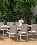 Bộ bàn ăn ngoài trời 1 bàn URBANITE 207 light cream và 8 ghế Topaz