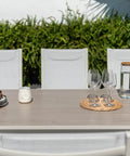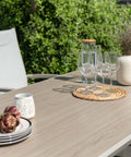 Hình dạng và hình thức gọn gàng của chiếc bàn được bổ sung bởi các chân bàn cách điệu, góp phần tôn lên thiết kế hiện đại của nó. Hình thức chắc chắn và chân đế chắc chắn của bàn đảm bảo rằng nó có thể chịu được các yếu tố thời tiết và tồn tại trong nhiều năm tới. Bàn ăn hình chữ nhật Urbanite có thể kết hợp với tối đa sáu ghế để có thời gian ăn uống thoải mái cho gia đình.