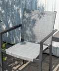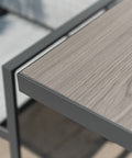 Màu xám kim loại rất linh hoạt và đậm nét, làm cho nó trở thành điểm nhấn đáng chú ý cho bất kỳ khung cảnh ngoài trời nào. Hiệu ứng gỗ được in tinh xảo trên mặt bàn tăng thêm vẻ sang trọng và tinh tế, đồng thời các cạnh sắc nét và gọn gàng mang lại tính thẩm mỹ hiện đại.