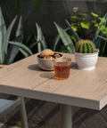 Màu kem rất linh hoạt và đậm nét, làm cho nó trở thành điểm nhấn đáng chú ý cho bất kỳ khung cảnh ngoài trời nào. Hiệu ứng gỗ được in tinh xảo trên mặt bàn tăng thêm vẻ sang trọng và tinh tế, đồng thời các cạnh sắc nét và gọn gàng mang lại tính thẩm mỹ hiện đại.
