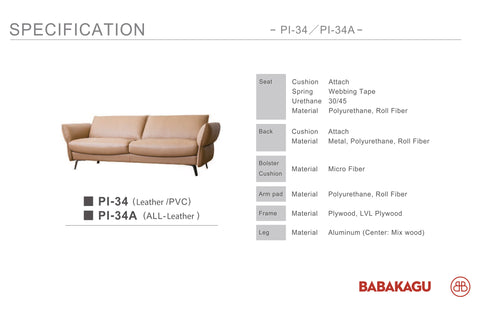 Sofa băng trong nhà Babakagu PI-34, sofa Da bò cao cấp, sofa Nhật